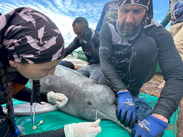 Las evaluaciones de salud en estos cetáceos se han desarrollado en varios países de Suramérica donde habitan, en el marco de la Iniciativa Suramericana de Delfines de Río (Sardi), con el fin de mostrar la estrecha relación entre la salud de los ríos y la biodiversidad que habita en estas cuencas, incluidos los seres humanos.